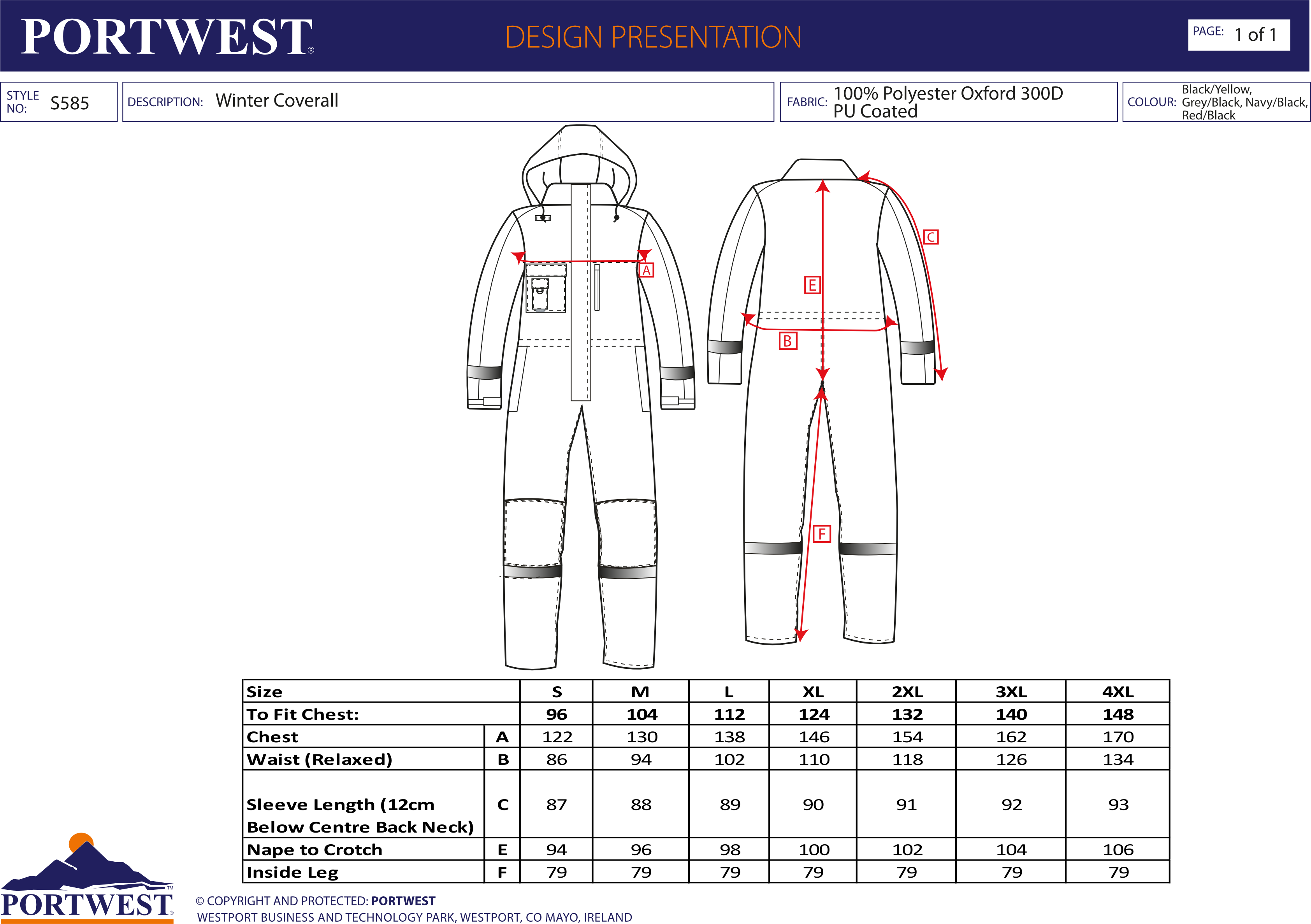 Portwest Winter Coverall S585