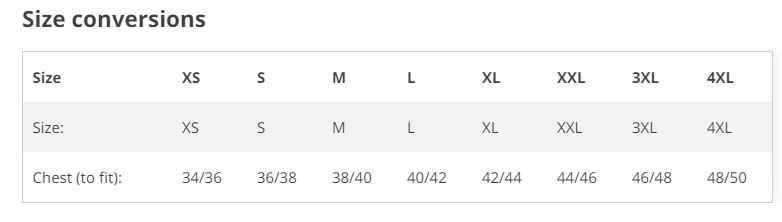 Chest (to fit) 34/36 36/38 38/40 40/42 42/44 44/46 46/48 48/50